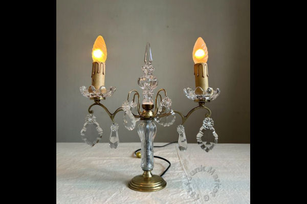 フランスアンティーク キャンドルランプ 2灯 蝋燭 クリスタル スタンド ライト シャンデリア ブロカント クリスマス