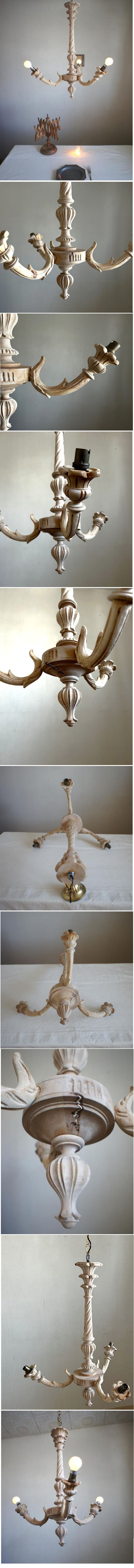 フランスアンティーク 木製シャンデリア 3灯 フレンチ シャビー 店舗什器 おうちカフェ 蚤の市 PARIS